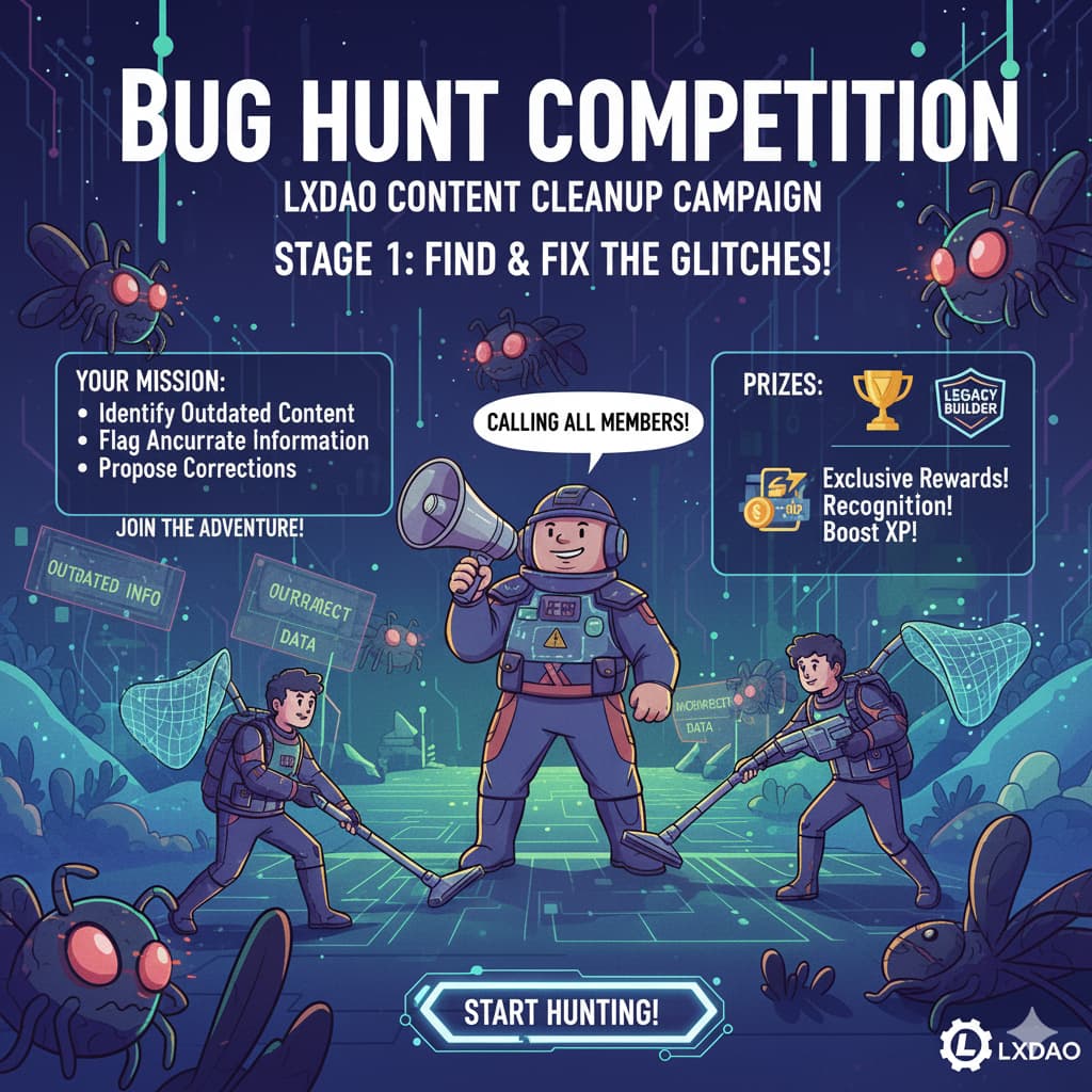 以一场线上的,面向全体社区成员的“内容捉虫大赛”作为内容小组的启动项目。这个项目不仅能高效地完成一次对 LXDAO 现有内容的“健康检查”,更重要的战略价值在于: