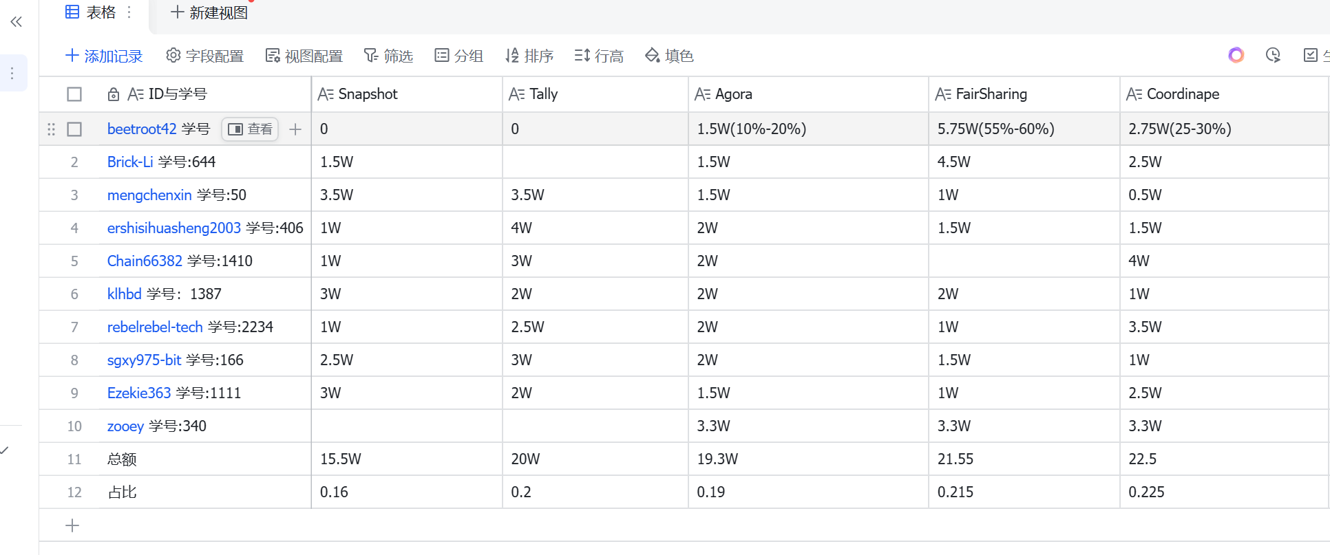 本次论坛共有 10 位同学 具备初始治理权资格。在「良心杀」资金分配的关键讨论中,实际参与提案、表决或贡献有效意见的同学为 10 位。
