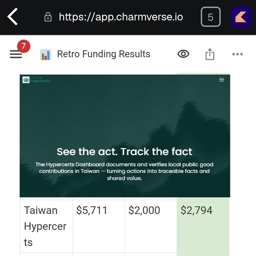 台灣 GreenSofa 最近推出 Taiwan Hypercerts Dashboard 獲得 Gitcoin Grant 24 grant 資助,推進台灣 public goods 的策展和審查~